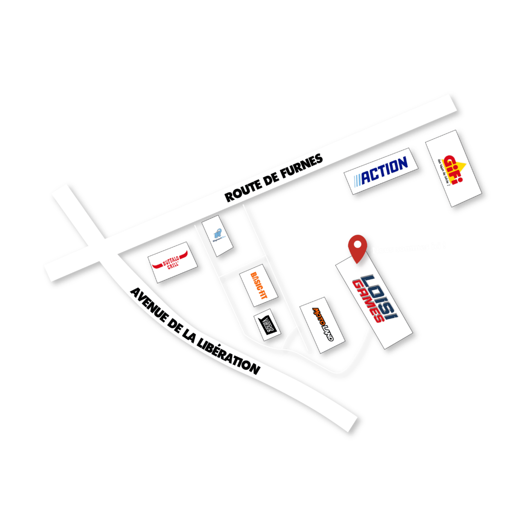 Notre complexe de loisirs se situe près de Dunkerque. Plus précisément à Coudekerque-Branche dans la zone commerciale de Buffalo Grill, juste derrière Basic Fit & MotoLand.